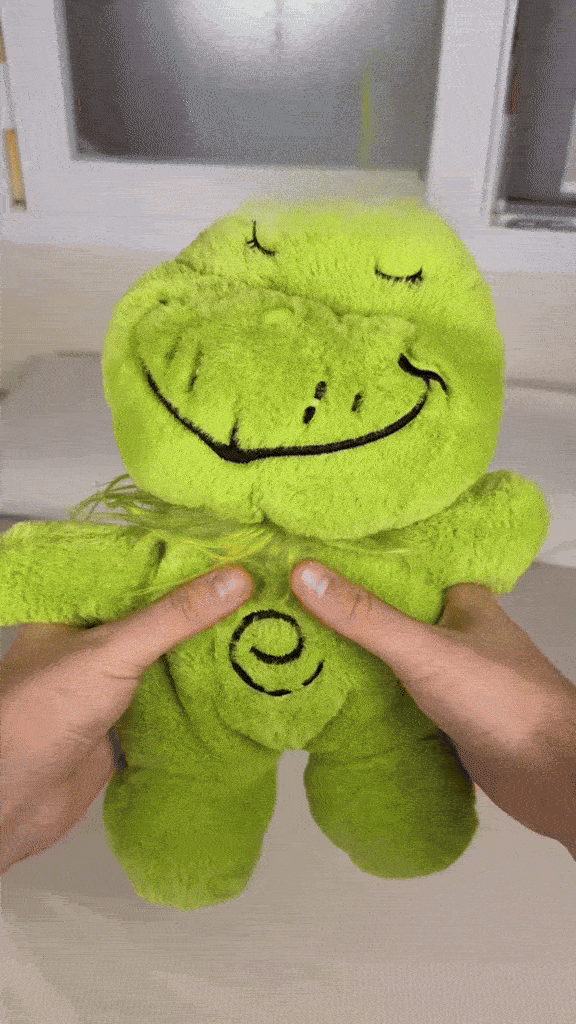 Para mantener su textura premium y funcionalidad, GrinchHug debe limpiarse solo en la superficie. Recomendamos limpiar suavemente con un paño húmedo y jabón neutro. No lo sumerjas en agua ni lo pongas en la lavadora, ya que esto puede dañar el mecanismo interno de respiración y los componentes electrónicos.